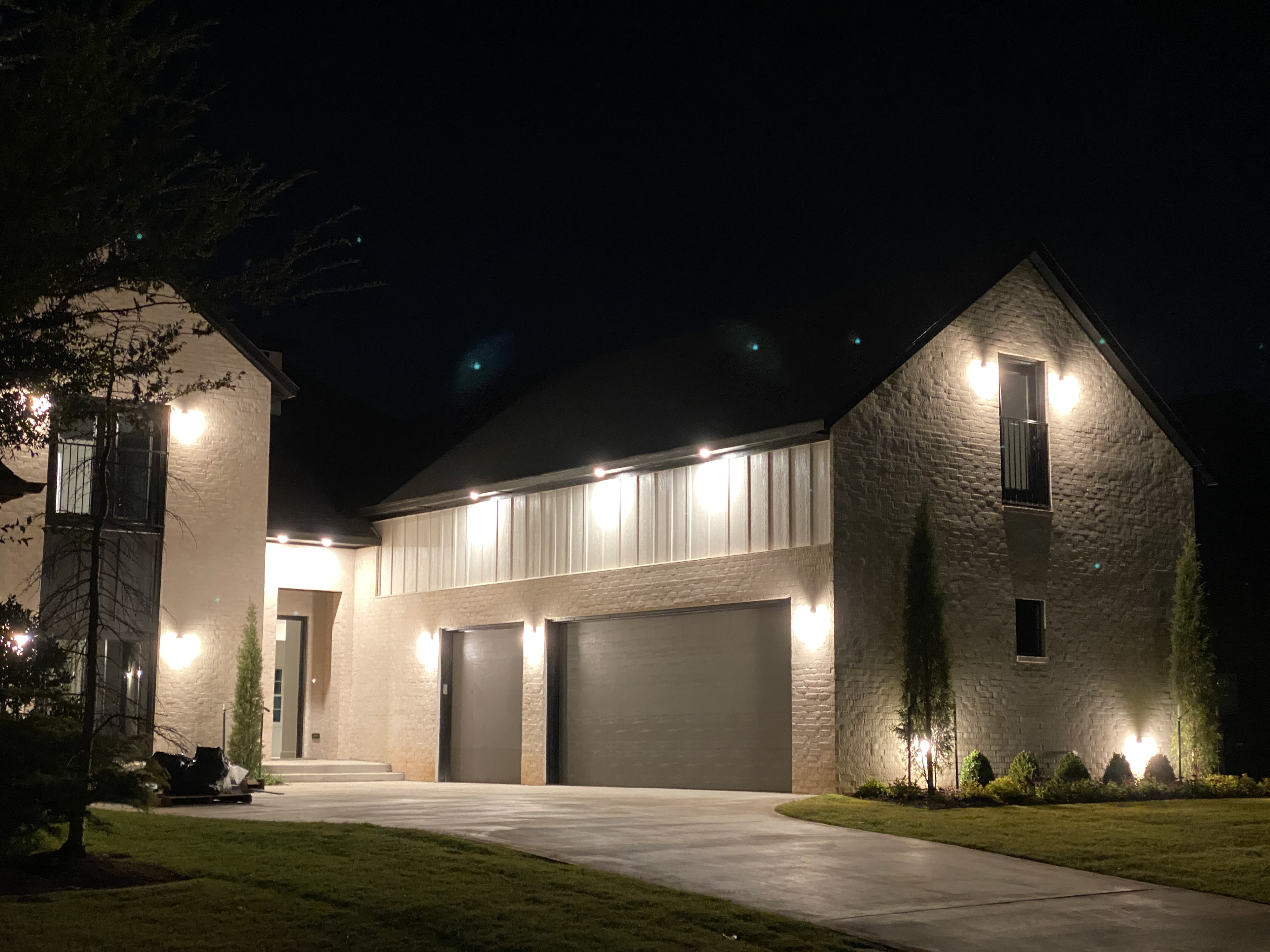Garage Doors: Contemporary design with glass panels, adding a modern touch to the façade.
